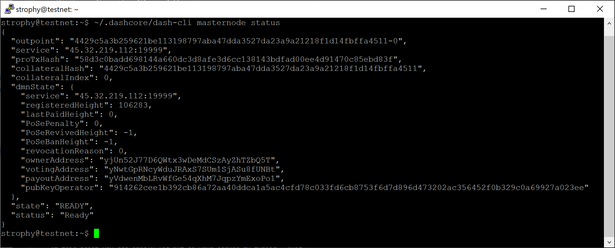 masternode by entering ~/.dashcore/dash-cli masternode status or