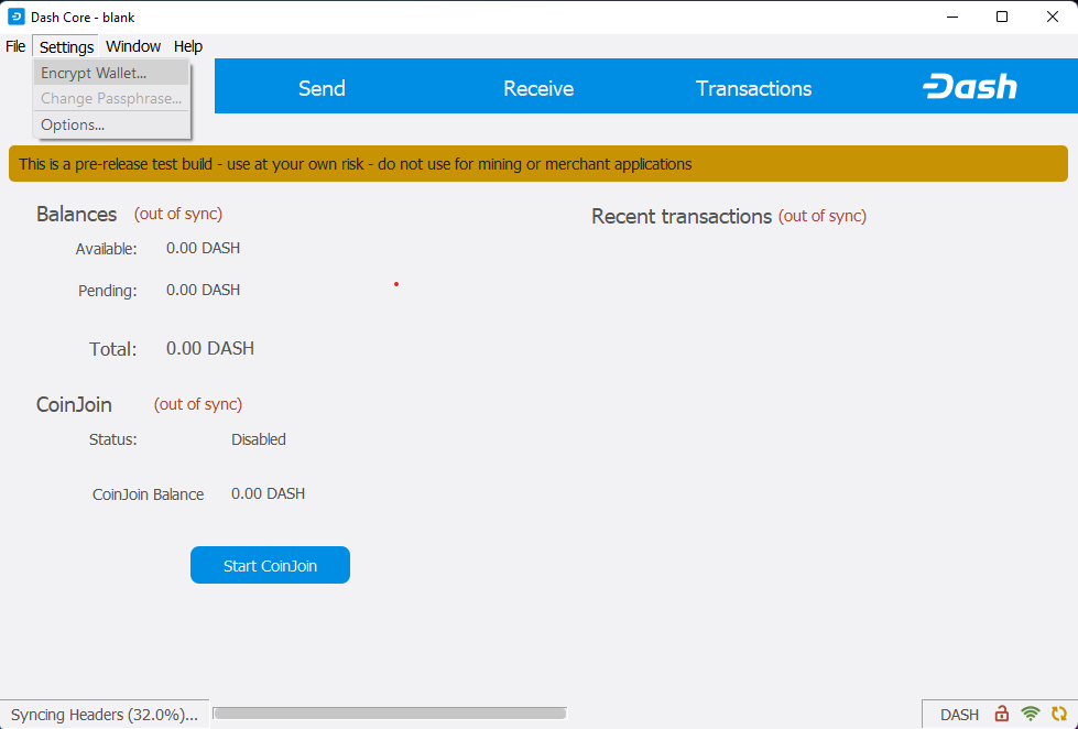 Running Dash Core for the first time#