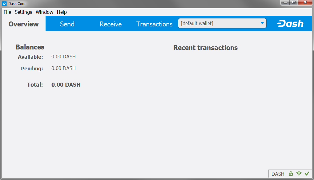 During this process, Dash Core will download a full copy of the Dash blockchain from other nodes to your device. Depending on your internet connection, this may take a long time. If you see the message “No block source available”, check your internet connection. When synchronization is complete, you will see a small green tick in the lower right corner.