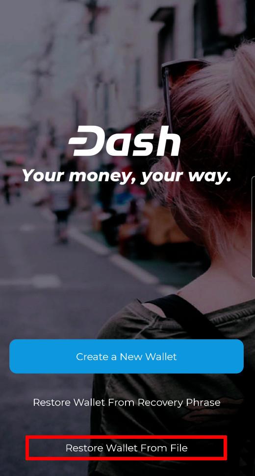 If file name is similar to dash-wallet-backup or includes the word ‘mobile’, try to restore using Dash Wallet for Android