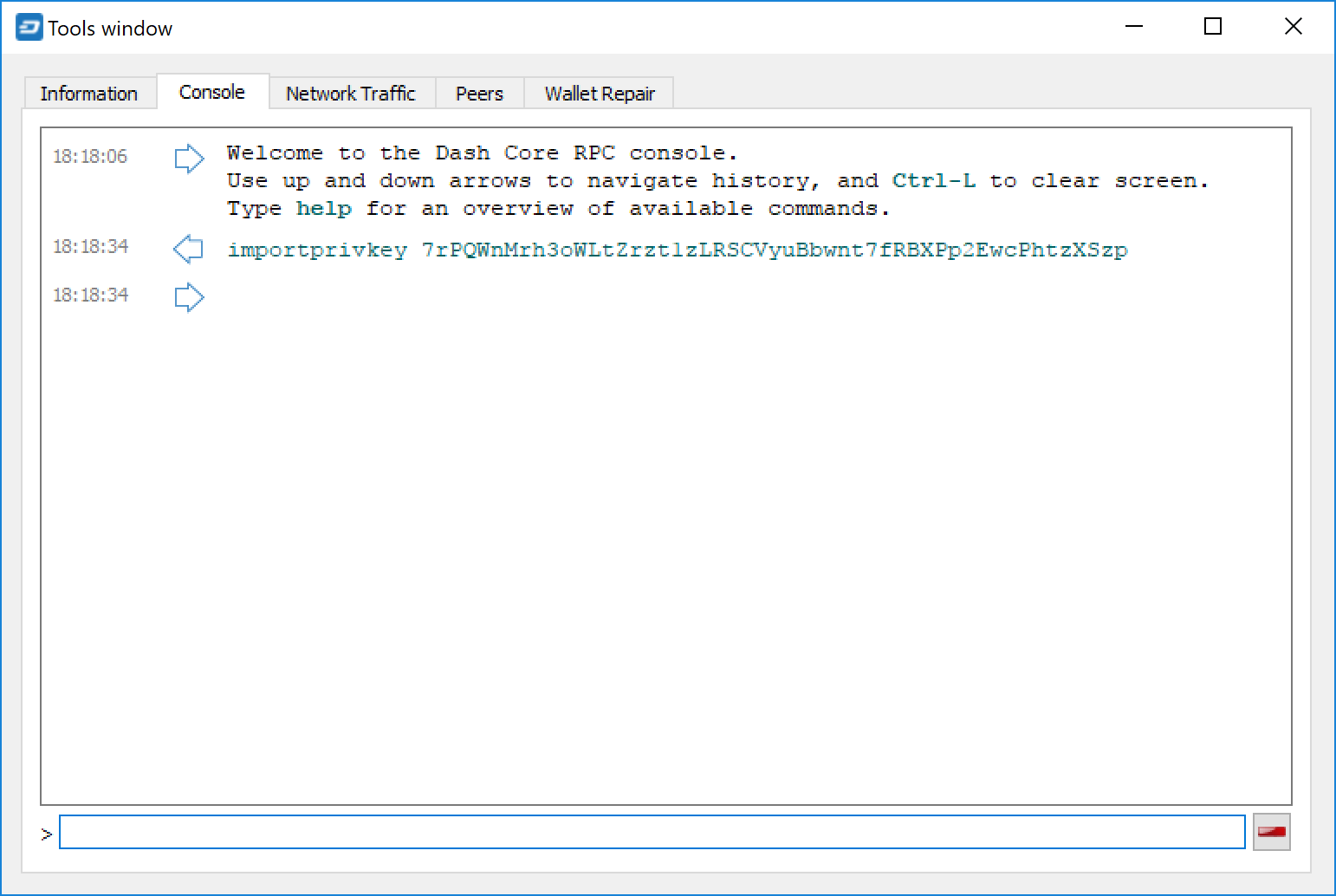 Dash Core will rescan the blockchain for transactions involving the public address of this key and enter the transactions and balance in your wallet.