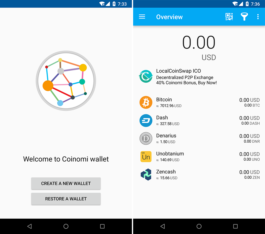 Coinomi is an open-source multi-currency mobile wallet available for iOS and Android. Your private keys never leave your device, and strong wallet encryption guarantees that your funds are always under your control only. Instant exchange is available directly in the wallet through ShapeShift and Changelly integrations.